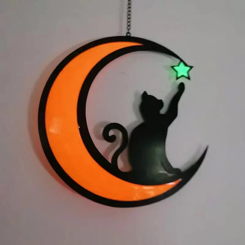 😻 Real Stained Glass- This luminous glass hanging decoration is designed with hand-painted black cats, it is a unique decoration that catches the eye no matter day or night.
